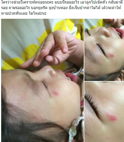 คนอื่นก็ว่า รอยยุงกัด รอยล้มกระแทก อันนี้เขา อยู่โรงบาลต้องดูแลลูกดีๆอยู่แล้ว