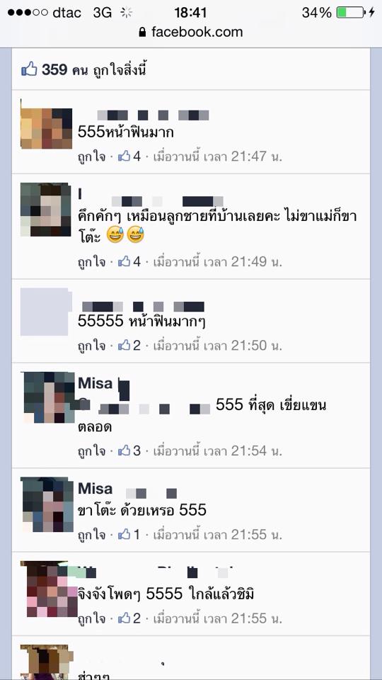 แต่สิ่งที่ผมตกใจมากกว่าก็คือ คนที่มาเม้นใต้รูปของน้องผู้หญิงคนนั้น ไม่มีใครรู้สึกว่ามันเป็นการกระทำที่ผิดเลย