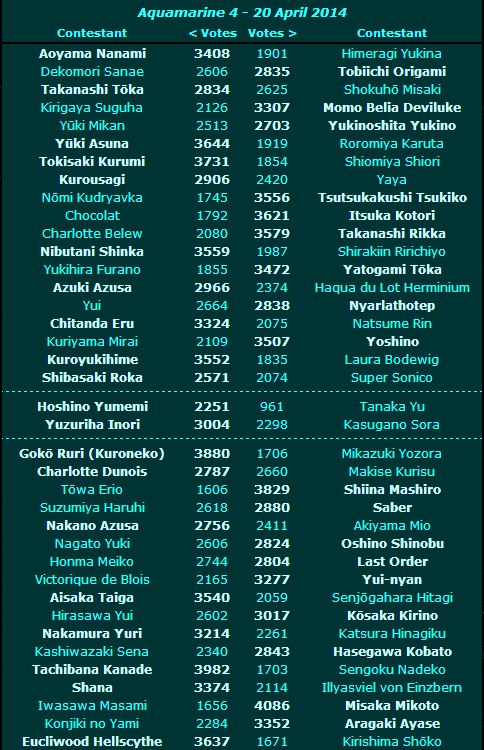 งานเข้า เอาสั้นๆเน้อ ผลวันที่ 2 กด Round 2 > http://internationalsaimoe.com/statistics/aquamarine/ หลักๆก็เป็นไปตามอันดับที่ผ่านๆมา ซากุระโซวทั้งสองคนยังแรงดี ถล่มขาดตลอด / อาซึนะชนะคุริสุห่าง แต