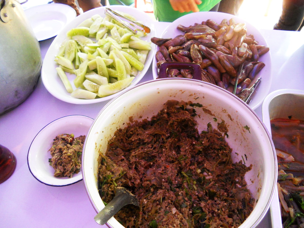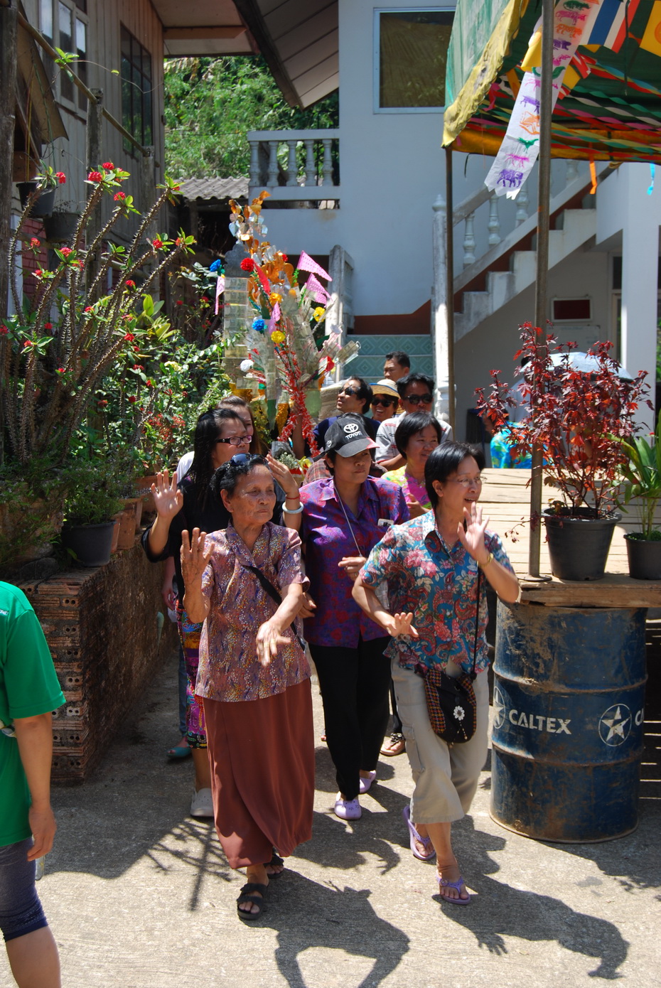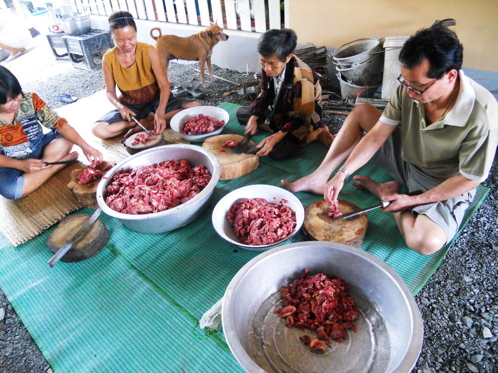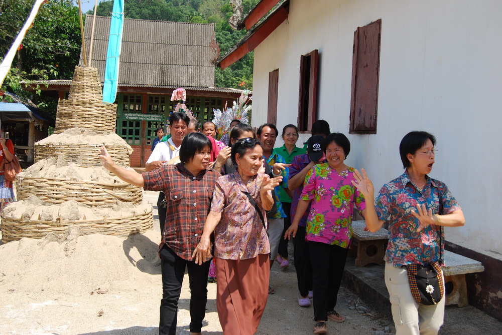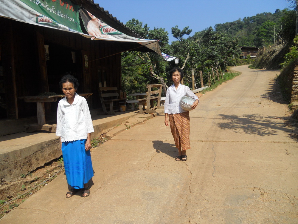 แวะตั้งขบวนที่บ้านญาติ.ลุงน้อยก่อนที่จะเดินทางไปที่วัด...โดยมีชาวบ้านให้การต้อนรับด้วยอาหารกลางวันสุดอร่อย..ก่อนจะเริ่มขบวนเดินเท้าขึ้นวัด..รถยนต์ขึ้นลำบากเพราะทางชันมาก..