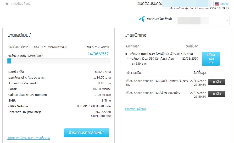 เพิ่งเปลี่ยนมาใช้รายเดือน ตัดรอบบิลวันที่ 22 ใช้โปร 539บ. โทรฟรี 550นาที
