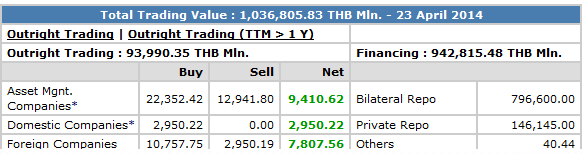 ตามประเภทนักลงทุน ประจำวันที่ 23 เมษายน 2557 ดังนี้
