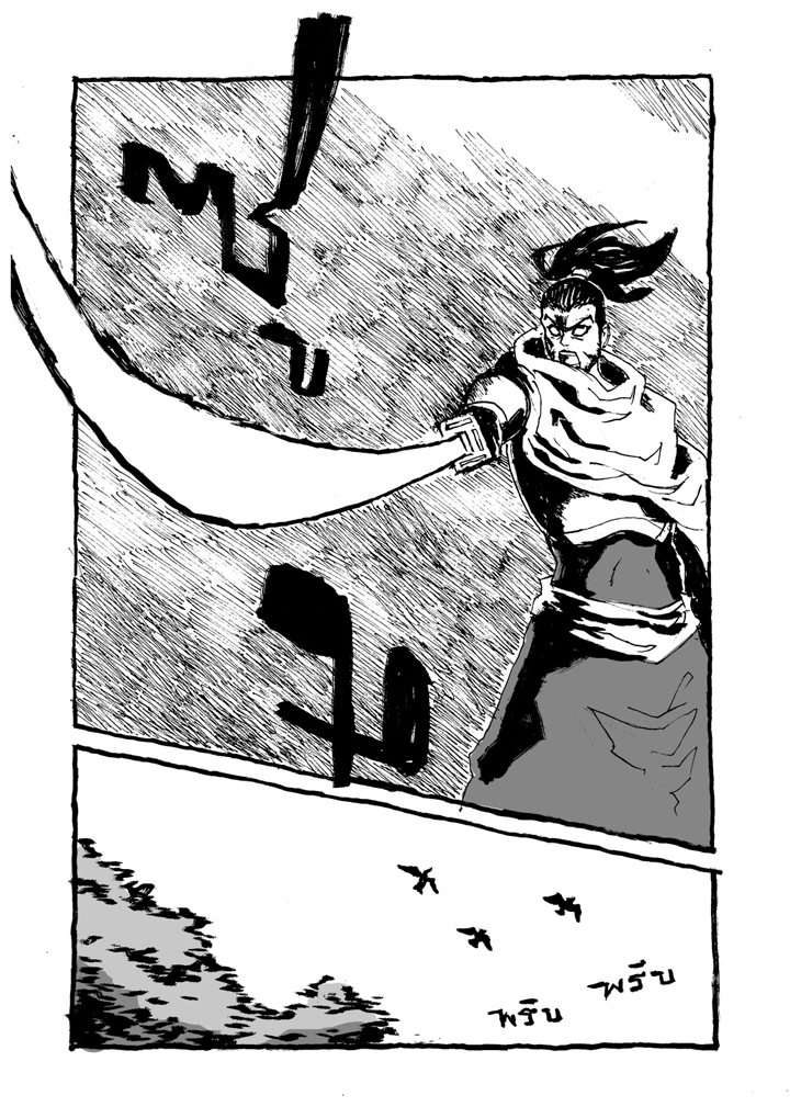 เรื่องนี้อยากทดลองวิธีลงหมึกแบบใช้ปากกาหัวพู่กันให้เข้ากับเนื้อเรื่องที่เกี่ยวกับซามูไร