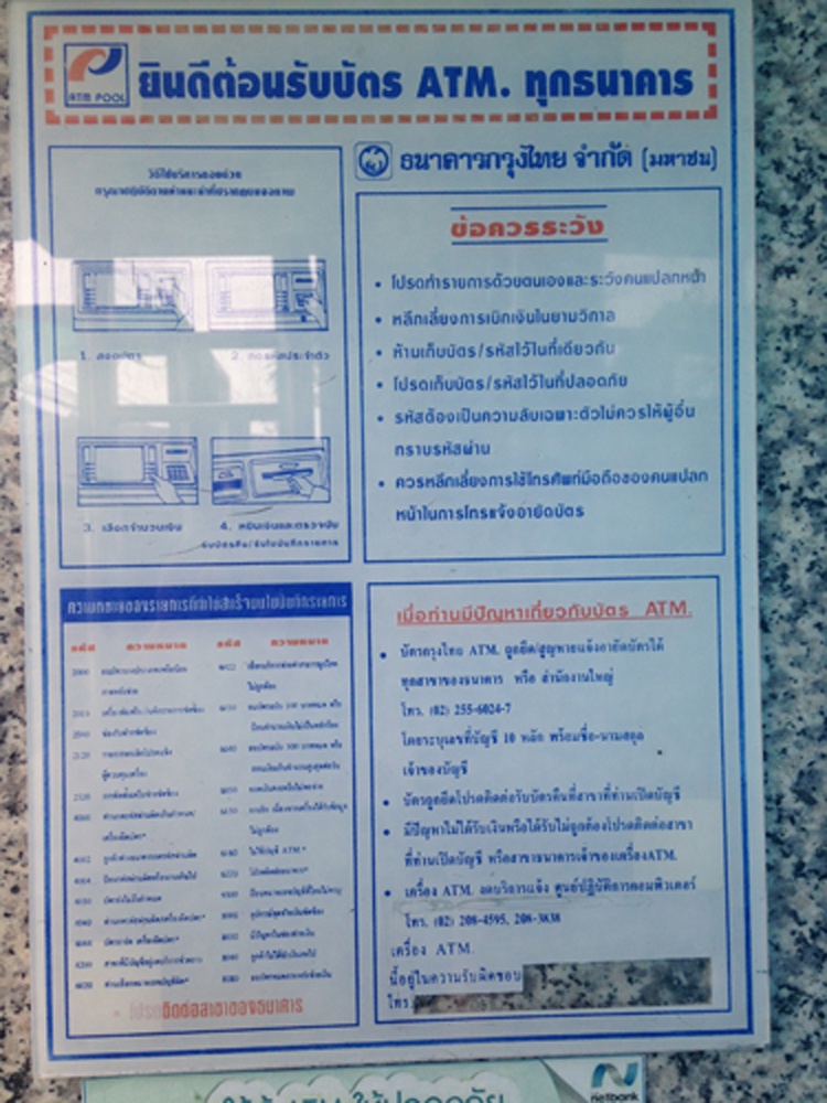 วันนี้เวลาประมาณ 10.50 นาที ได้ไปใช้บริการตู้ ATM ของธนาคารกรุงไทย ตรงหน้าศาลากลางชลบุรี หลังโรงเรียนชลหญิง