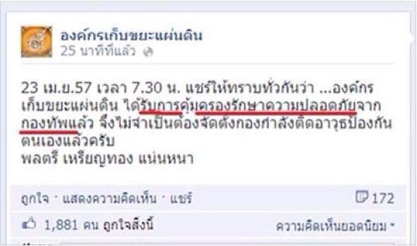 https://www.youtube.com/watch?v=-vlPqlVV0SI&feature=youtube_gdata_player ชาติ ศาสนา พระมหากษัตริย์ ต้องรักษา ต้องพิทักษ์ ต้องให้เข้มแข็ง ดูจาก Status ทุกวันนี้ ถึงยังไงการเมืองก็อ่อนแอกว่าทุกสถาบ