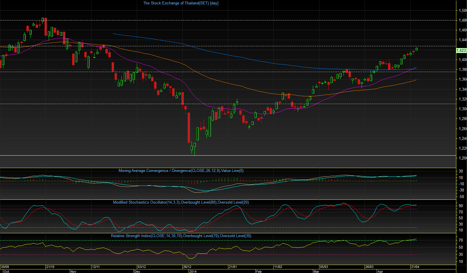 อย่างหนาแน่น ทำให้ SET index ทะยานขึ้นไปปิด ที่ระดับ 1423 จุด +8.34 จุด วันนี้มาติดตามกันต่อ ว่าจะสามารถพุ่งทะยานขึ้นไปยืน