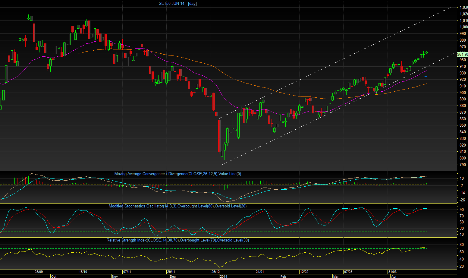 TF60 : เมื่อวานนี้แกว่งตัวในกรอบแคบๆ (958-962) เป็นแนว "Sideway Up" แต่ดูเหมือนระดับ 962 จะมีแรงเทขาย ออกมาเป็นระยะๆ