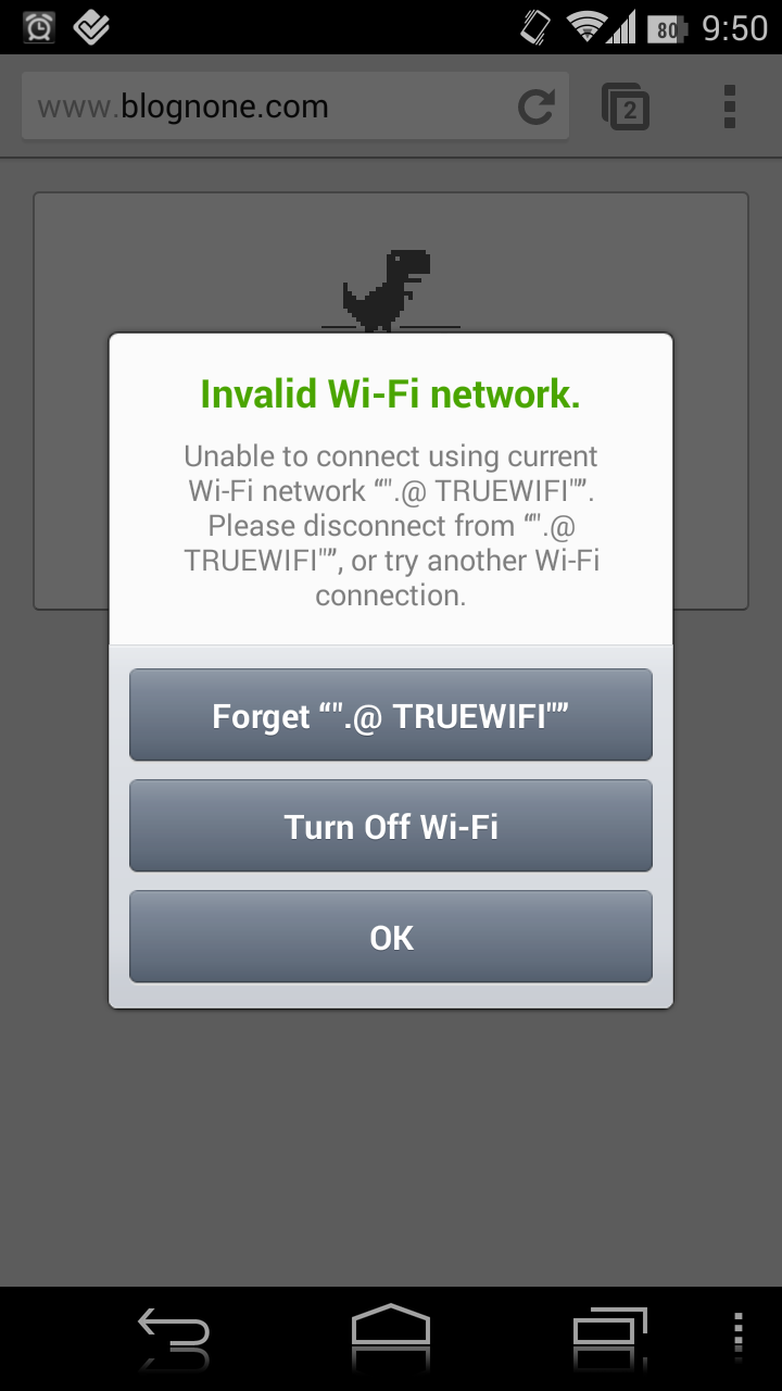 อาการที่พบ คือ เมื่อผมกดเชื่อมต่อ @truewifi ไปแล้ว มันก็ขึ้น connected ปกติ (ผมใช้ android นะ) แต่ไม่ redirect หน้า login ให้อัตโนมัติ พอลองเข้าเว็บอะไรสักอย่างใน chrome เพื่อให้มัน redirect ไปหน้า login มันก็จะเป็นหน้าขาวๆแบบโหลดไม่ไปตลอด ส่วนแอพ line ก็จะขึ้นเตือนที่ notification ดังภาพครับ ไม่รู้ว่าต้องแก้ยังไง