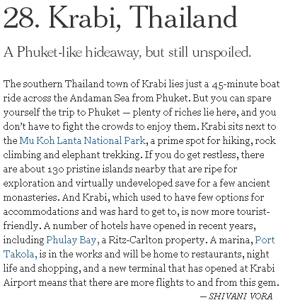 กระบี่ : 1 ใน '52 Places to Go in 2014' โดย The New York Times