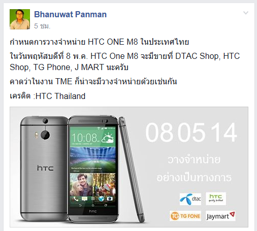 HTC M8 วางตลาดแล้วครับ