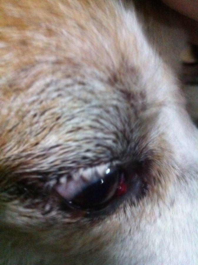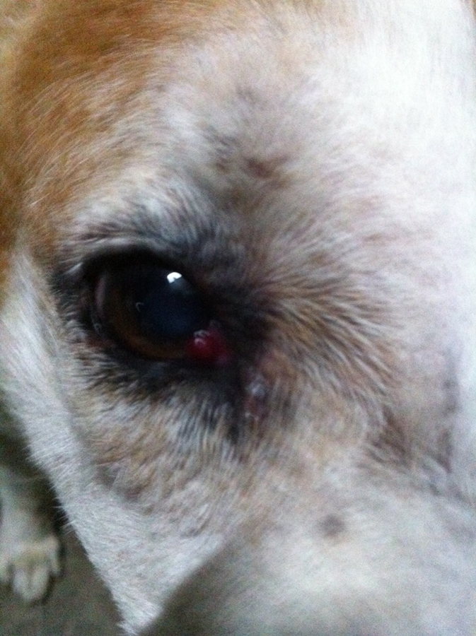 ตุ่มสีแดงที่ตาของสุนัข ทำยังไงดีครับ