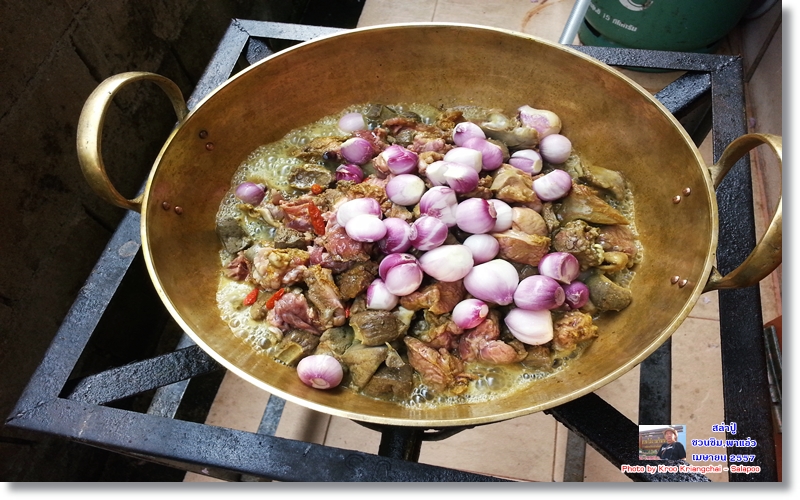 เติมหอมแดงลงไปอีกชุดหนึ่งก่อนน้ำจะงวด จนในที่สุด