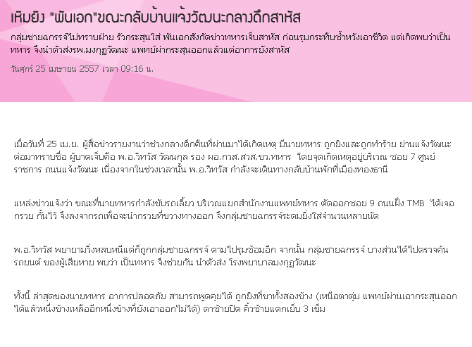 งามหน้าแล้วประยุทธ์ ทหารยศพันเอก โดนการ์ดกปปส.ยิงและทำร้ายบาดเจ็บสาหัส ขณะจะกลับบ้าน