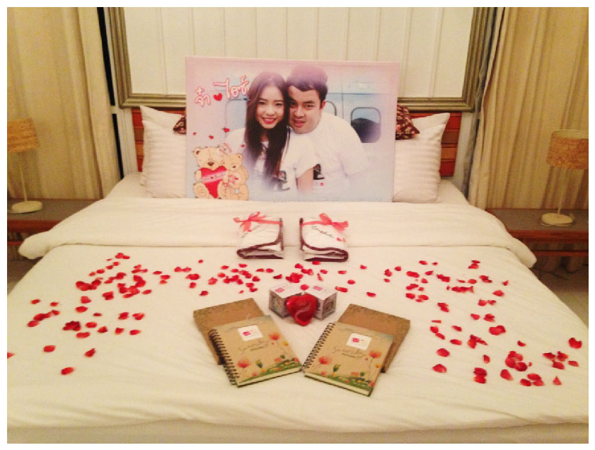 มีการตกแต่งห้องพักให้เสมือนเป็นเรือนหอของเราด้วยนะครับ