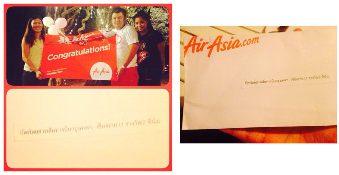 รางวัลที่2ที่เราได้คือ ตั๋วเครื่องบินไปกลับ กรุงเทพ-เชียงราย