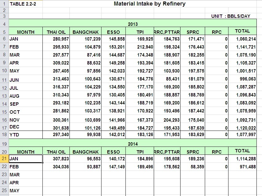 อย่างที่ผมตัดมาให้ดูนี่ เขาก็แยกให้ดูเลยว่าแต่ละเดือน แต่ละโรงกลั่นมีกำลังการผลิตเท่าไหร่บ้าง