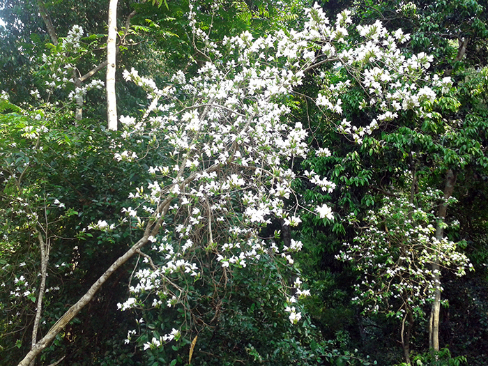 แล้วเจอต้นไม้กำลังออกดอกสีขาวเต็มต้น ระหว่างทางเดินไปน้ำตกชั้นต่างๆ
