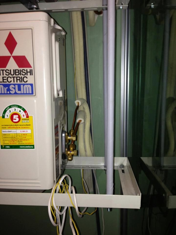 พร้อมท่อแอร์โดยที่คอมแอร์ยังไม่ได้ถูกยกขึ้นครับ เพราะเดินท่อยังไม่เสร็จ