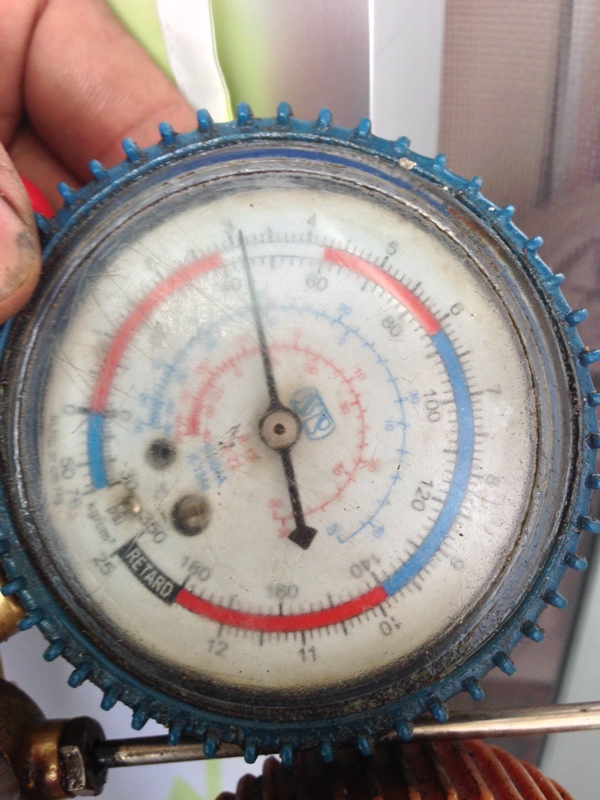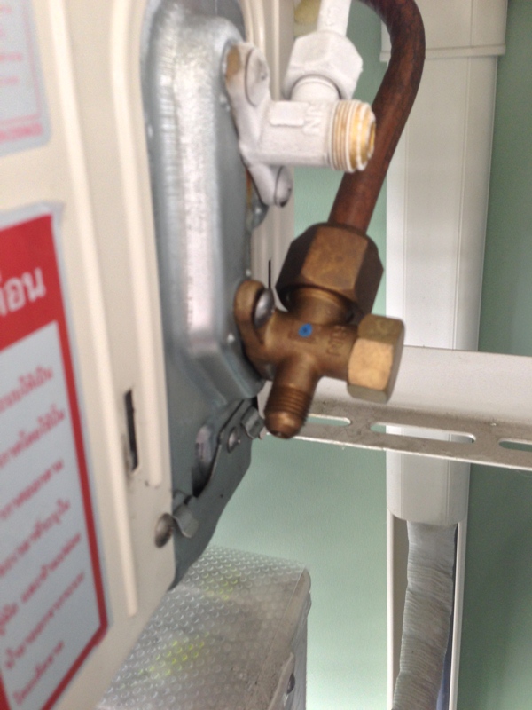 พอมาถึงช่างก็ตรวจดูแอร์ที่มีปัญหา แล้วพอดูว่าไม่เย็นก็เลยเช็คน้ำยาปรากฏว่าน้ำยาลดมาเยอะมากครับ