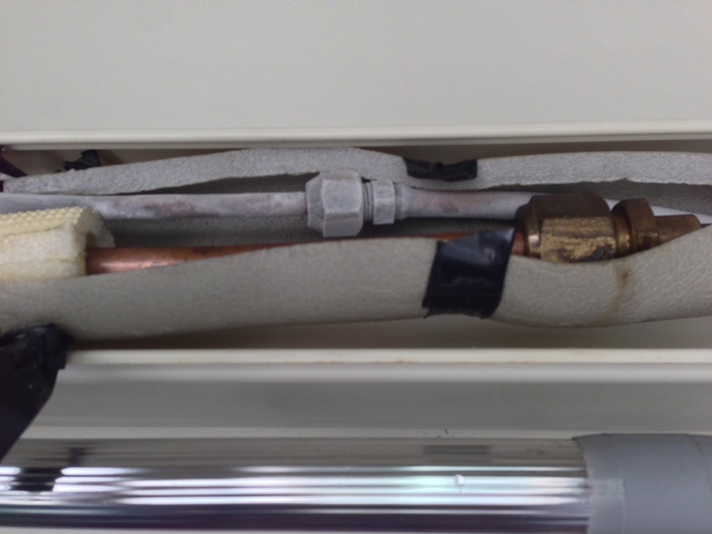 ติดตั้งไม่ดีครับ ทำให้เกิดอาการรั่ว และ ก็มีปัญหาตรงที่หุ้มท่อแอร์บางเกินไปทำให้เกิดน้ำเกาะรอบๆ และมีโอกาสที่จะเกิดขังอยู่ในรางครอบท่อครับ