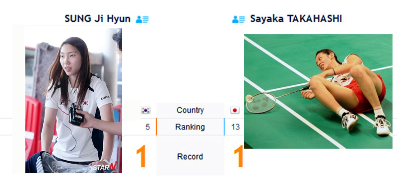 Sung Ji Hyun (Korea) vs Takahashi Sayaka (Japan) แข่งคู่ที่ 3 โดยคู่แรก เริ่มแข่งประมาณ 10.00 น.