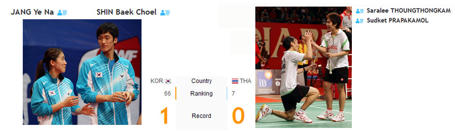 คู่ผสม สุดเขต-สลาลีย์ vs Shin Baek Choel -Jang Ye Na (Korea) แข่งประมาณ 10.00 น. (คอร์ท 2)
