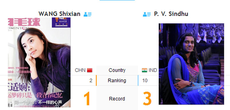 Wang Shixian (China) vs P. V. Sindhu (India) แข่งคู่ที่ 2 โดยคู่แรก แข่งประมาณ 10.00 น. (คอร์ท 2)
