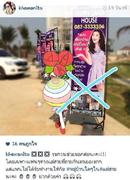 ร้อนถึงเจ้าตัวต้องโพสต์ภาพดังกล่าวพร้อมคำยืนยันว่าเธอไม่เคยรับงานเป็นพรีเซนเตอร์หมู่บ้านจัดสรรที่ใดเลยในอ.แม่สาย