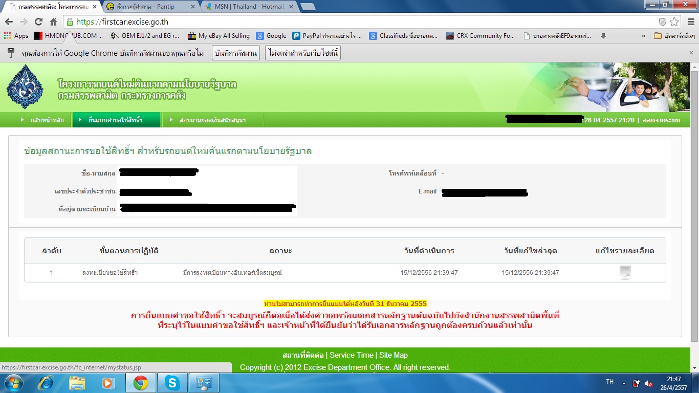 ถามเกี่ยวกับเงินคืนรถคันแรกที่จะได้รับ ในปี 2557 นี้ค่ะ