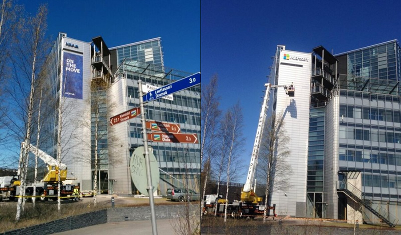ภายหลังการเจรจาซื้อขายกิจการโทรศัพท์ระหว่าง Nokia และ Microsoft สามารถบรรลุผลสำเร็จลงได้เมื่อช่วงวันที่ 25 เมษายน ที่ผ่านมาก็ต้องดำเนินการเปลี่ยนแปลงในด้านของตัวอาคารสำนักงานต่างไปพร้อมๆ กัน โดยสำนึกงานใหญ่ที่มีชื่อเล่นเรียกกันว่า Nokia House ตั้งอยู่ที่เมือง Espoo นั้นได้ดำเนินการเปลี่ยนป้ายชื่อตัวอาคารไปเป็นที่เรียบร้อย ซึ่งแน่นอนว่าก็เปลี่ยนเป็นชื่อของ Microsoft พร้อมโลโก้คุ้นตาเข้ามาแทนที่