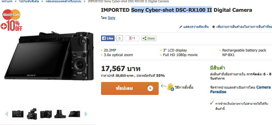 พอดีตอนนี้สนใจ Sony Cyber-shot DSC-RX100 II ซึ่งราคา ประมาณ 22,xxx บาท