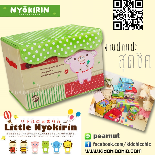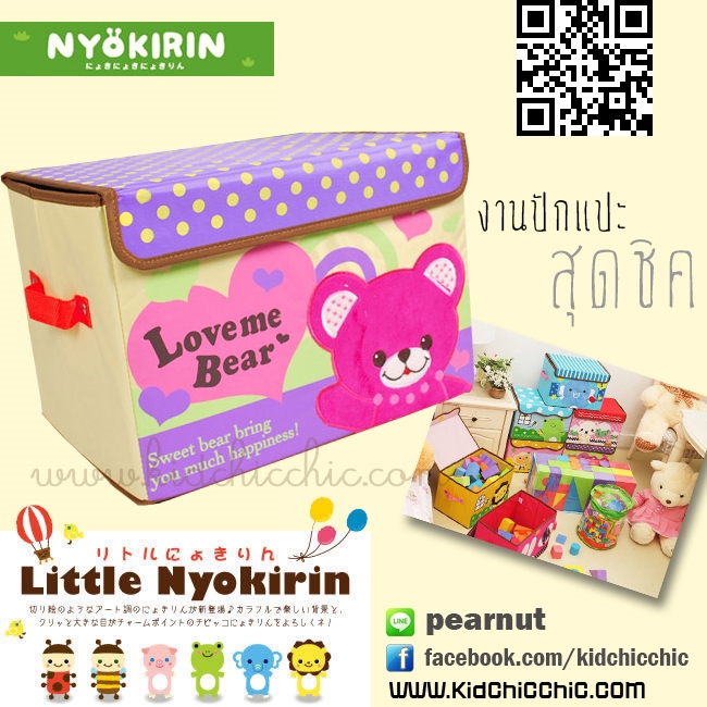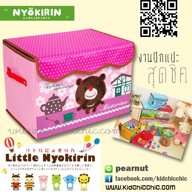กล่องเก็บของพับได้ เอนกประสงค์ NYOKIRIN กล่องเก็บของเล่น ของใช้ หน้ากล่องเป็นงานผ้าปักแปะ รูปตัวการ์ตูน NYOKIRIN น่ารักๆ เก๋สุดๆ พับได้เมื่อไม่ใช้ รับประกันความน่ารัก
