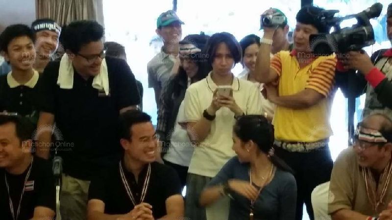 เมื่อช่วงเช้าวันที่ 28 เมษายน ผู้สื่อข่าวรายงานว่า ในระหว่าง นายสุเทพ เทือกสุบรรณ เลขาธิการ กปปส. นำมวลชนมาที่โรงงานยาสูบและเข้าไปยังห้องประชุม ได้มีการแนะนำตัวแกนนำกปปส.แต่ละคนที่ร่วมต่อสู้ จนมาถึงคิว นายเอกนัฏ หรือ ขิง พร้อมพันธุ์ แกนนำนปส.(ซึ่งเป็นบุตรของนางศรีสกุล พร้อมพันธุ์ กับ นายพรเทพ เตชะไพบูลย์ ซึ่งปัจจุบันนางศรีสกุลเป็นภรรยาคู่ชีวิตของนายสุเทพ เทือสุบรรณ) นายสุเทพได้แซวนายเอกนัฏที่นั่งอยู่ติดกับน.ส.จิตภัสร์ หรือ ตั๊น กฤดากร (แกนนำสาวกปปส.ทายาทสาวของตระกูลเครื่องดื่มดัง) ว่า นั่งห่างๆกันบ้างก็ได้สองคนนี้ ปรากฎว่าเรียกเสียงกรี๊ดเสียงฮือฮาจากที่ประชุมกันอย่างครื้นเครง ทำให้น.ส.จิตภัสร์และนายเอกณัฏหันมายิ้มให้กัน ก่อนที่น.ส.จิตภัสร์จะแก้เขินด้วยการหันไปเล่นกับบุตรหลานของคนในโรงงานยาสูบ