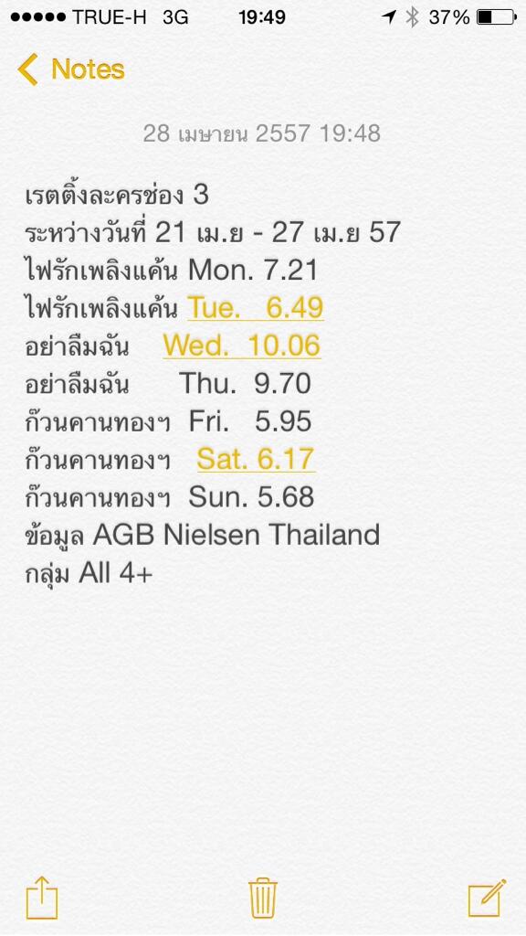 สรุป !!! ตารางเรตติ้งละครหลังข่าว ช่อง 3 / 5 / 7 ประจำวันที่ 21 - 27 เมษายน 2557 แบบละเอียด (มาช้าดีกว่าไม่มา)