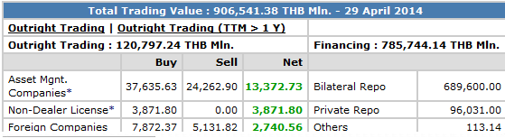 ตามประเภทนักลงทุน ประจำวันที่ 29 เมษายน 2557 ดังนี้