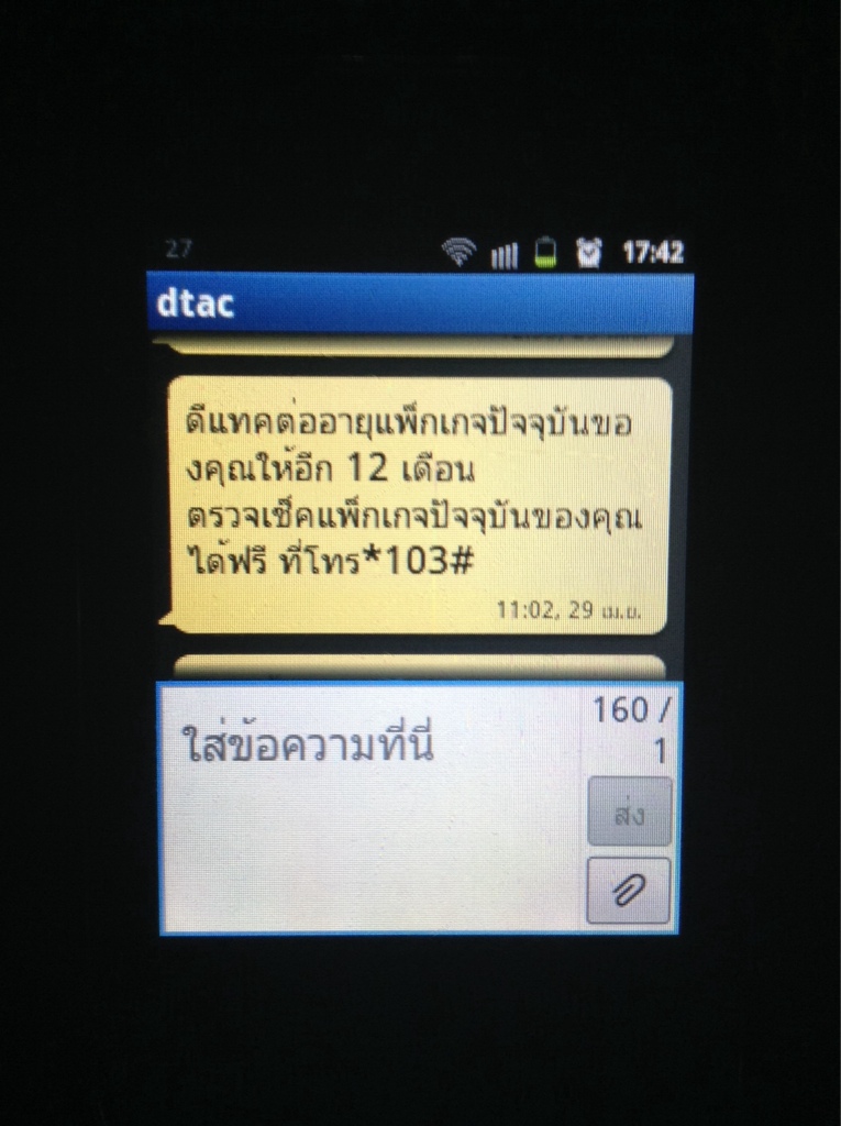 แต่จนวันนี้ก็ยังไม่มีข้อความการโอนย้ายสัญญาณเข้ามาเลยครับ แถมดีแทคยังส่งข้อความมาอีกว่า