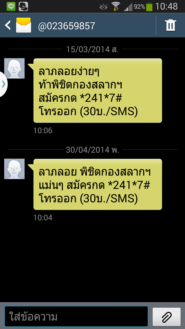 SMS กวนใจครับ จะให้ทำเยี่ยงไรดีขอรับ คือ บังเอิญว่าผมไม่ต้องการเลขเด็ดอ่าครับ ก็พอมีกินมีใช้อยู่บ้างอ่าครับ ^_^