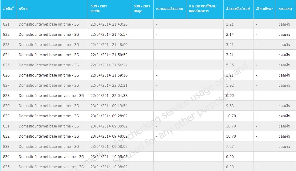 http://pantip.com/topic/32404120 รอบที่ 3 ลองดูรายละเอียดการใช้ รายการที่ 110 = 3.21 บาท และ 225 = 1.07 บาท ทั้งสองรายการเป็น Domestic Internet base on time ซึ่งผมมีโปรเน็ทฟรี 1G ยังเหลือมากมาย ทั้ง