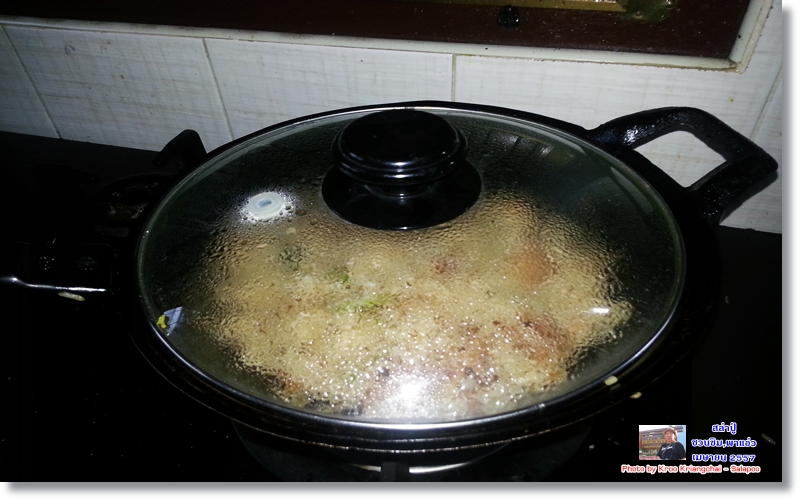 กำลังอบ ฝาหม้อไม่แน่ใจว่าเป็นฝาหม้ออะไร แต่ยืมมาใช้ได้พอดีกันเป๊ะ