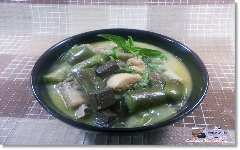 ก็ว่าได้ คือแกงเขียวหวานไก่ใส่มะเขือยาวไร้กะทิ ฟังชื่อแล้วหลายท่านคงแปลกใจใคร่เห็น