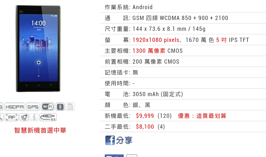 ผมอยู่ไต้หวันสนใจจะเปลี่ยนมือถือใหม่ MI3 16GB เปิดราคามาแบบน่าเสียเงินมาก 9,999 NT$ เป็นเงินบาทก็ประมาณ 10,717 บาท(อัตราแลกเปลี่ยนวันนี้)