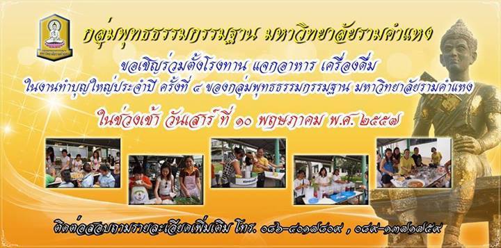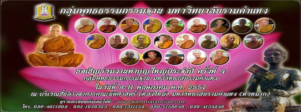งานทำบุญใหญ่ประจำปี ครั้งที่ 4 กลุ่มพุทธธรรมกรรมฐาน มหาวิทยาลัยรามคำแหง วันที่ 9-11 พฤษภาคม พ.ศ.2557