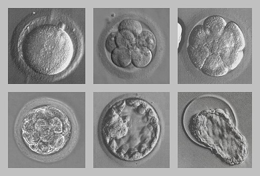ภาพนี้เป็นภาพที่แสดงลำดับพัฒนาการของมนุษย์เราตั้งแต่วันแรกที่ไข่และอสุจิปฏิสนธิกันจนเกิดเป็นตัวอ่อนขึ้น หลังจากนั้นเราก็มีการเจริญเติบโตแบ่งเซลล์เพิ่มจำนวนมากขึ้นเรื่อยๆ จาก 1 เซลล์ กลายเป็น 2 เซลล์ในวันที่ 1 และจาก 2 เซลล์ กลายเป็น 4-6 เซลล์ในวันที่ 2 และจาก 4-6 เซลล์ กลายเป็น 8-10 เซลล์ในวันที่ 3 และจาก 8-10 เซลล์ กลายเป็นหลายๆเซลล์ในวันที่ 4 และในที่สุดเราก็กลายเป็นตัวอ่อนที่สมบูรณ์พร้อมที่จะเข้าไปอยู่ในโพรงมดลูกของมารดาในวันที่ 5 หลังการปฏิสนธิ จากนั้นตัวอ่อนก็จะมีการแบ่งตัวเพิ่มจำนวนเซลล์ให้มากขึ้นและขยายขนาดจนเบียดให้เปลือกหุ้มตัวอ่อนบางลงเรื่อยๆและแตกออก แล้วจึงฟักตัวออกจากเปลือกเพื่อฝังตัวในโพรงมดลูก เจริญพัฒนากลายเป็นทารกตัวน้อยๆต่อไป