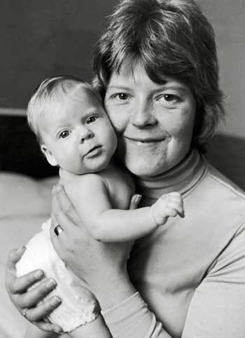 หลุยส์ บราวน์ เด็กหลอดแก้วรายแรกของโลก ถ่ายร่วมกับ นางลิสลี่ย์ บราวน์ ผู้ป็นมารดา เมื่อวันที่ 9 ตุลาคม ค.ศ. 1978