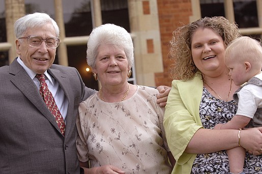 ภาพถ่ายประวัติศาสตร์ระหว่าง ศาสตราจารย์ โรเบิร์ต เอ็ดเวิร์ด และ นางลิสลี่ย์ บราวน์ และ หลุยส์ บราวน์ เด็กหลอดแก้วรายแรกของโลก พร้อมด้วย คาเมร่อน บุตรชายของเธอ ถ่ายเมื่อวันที่ 12 กรกฏาคม ค.ศ.2008