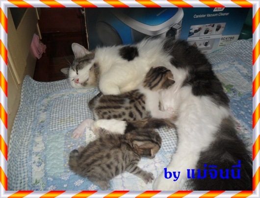 รับจากแม่จินนี่มาค่ะ 2 ตัว ตัวแรกชื่อ ทองแสน เป็นแมวหล่อผมม้า ลายวัว ตอนนี้เริ่มอ้วนแล้ว หนัก 2 โลกว่าๆแล้วค่ะ 555 ตัวที่สอง เพชรลดา แมวสวย แต่ซนมาก เริ่มอ้วนไปตามๆกัน