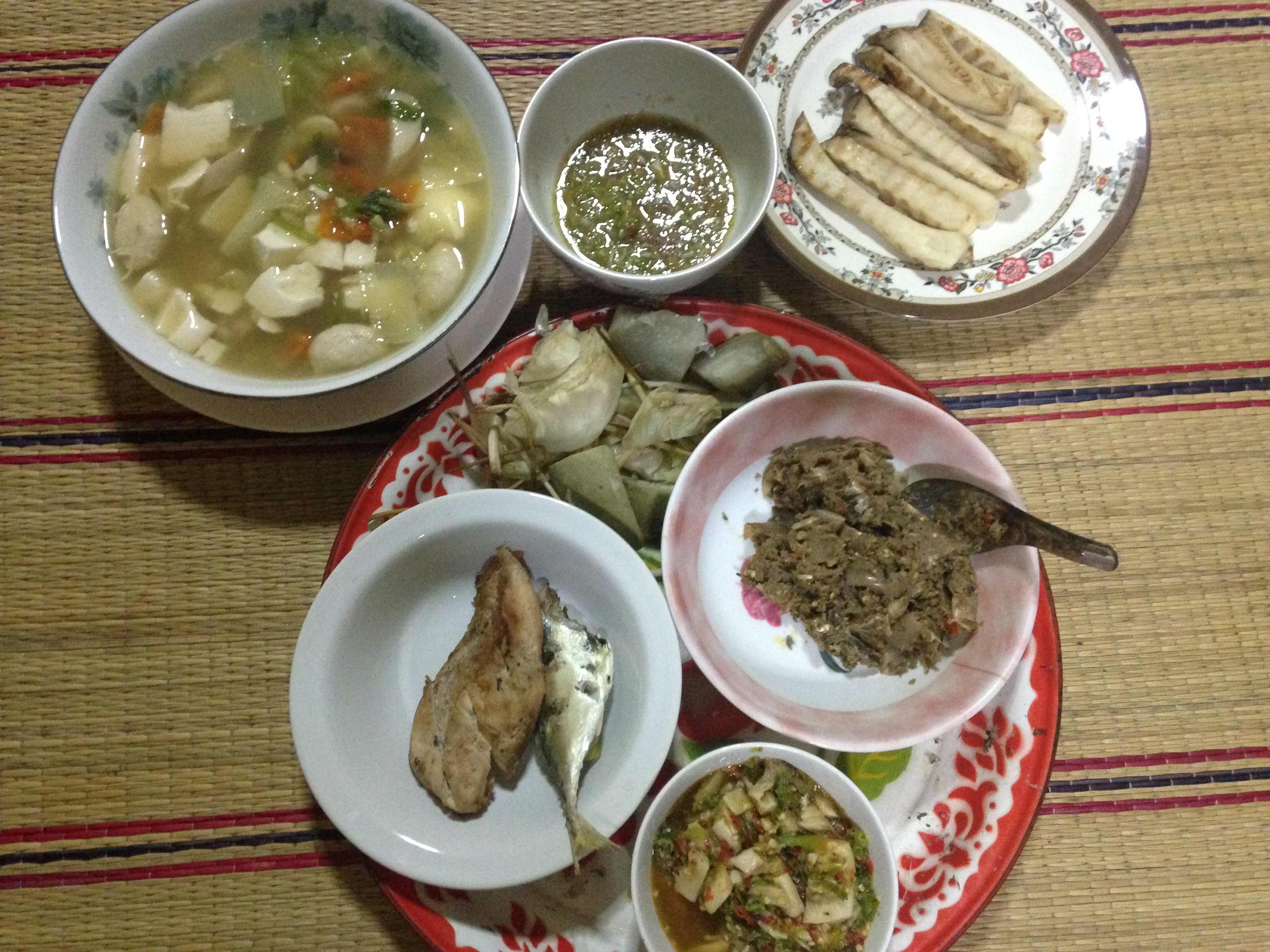 กับข้าวที่หมู่บ้านเราอยู่ ถ้าเป็นอาหารพื้นเมืองราคาจะน่ารักมากค่ะ อย่างเช่น ห่อนึ่งไก่, ห่อนึ่งหมู ห่อละ 20 -25 บาท แอ๊บปลาดุก 20 บาท แอ๊บปลาซิว 10 - 20 บาท แกงกระด้าง 10-25 บาท แกงท้องถิ่น 25-35-40 บ