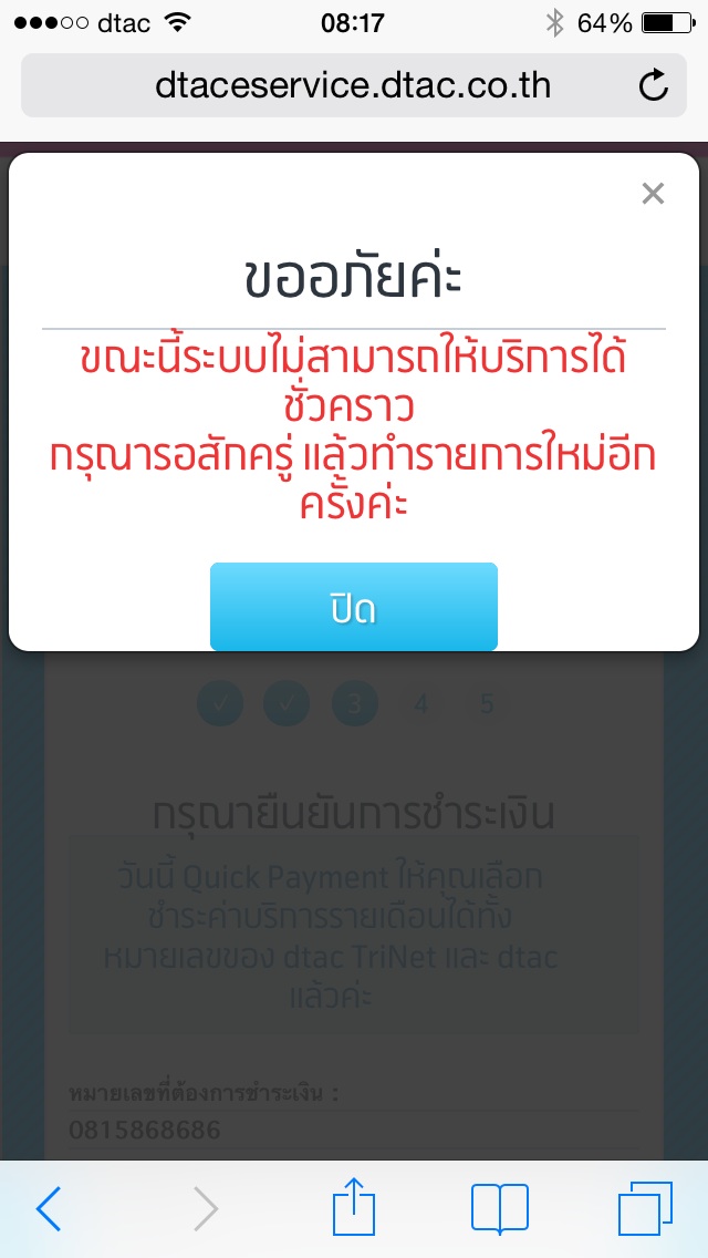 Dtac ชำระค่าบริการไม่ได้อีกแล้ว