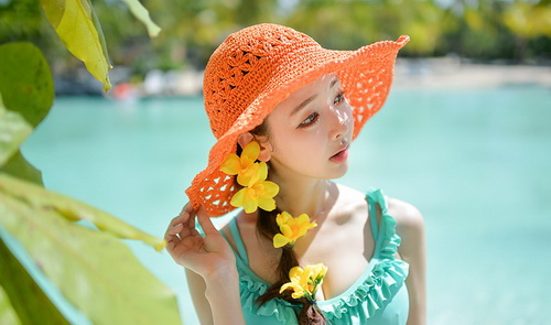 โชว์ผลงานหมวกถักจากไหมคอตตอน
