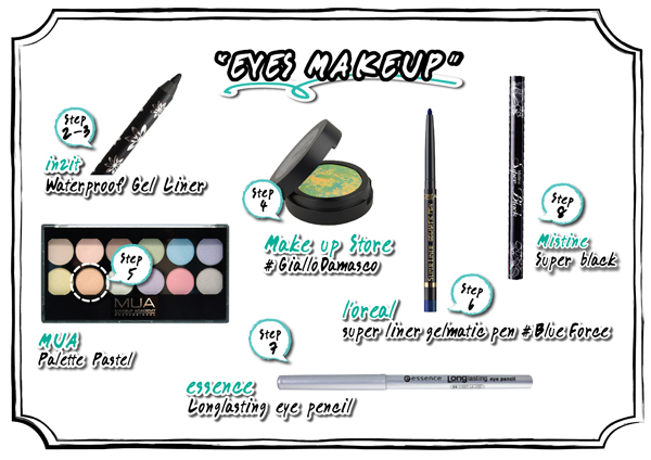 แต่งตาลุคนี้ อยากให้เปรี้ยวแต่อยากได้สีสันนิดให้ตาดูมีเสน่ห์ บังเอิญนางแบบปลายผมเป็นสีเขียว ก็เลยได้แรงบันดาลใจของการแต่งตาเลยค่ะ ใช้โทนเขียว น้ำเงิน ดำ สโมคกี้อายเบาที่หางตาด้วยสีดำ ให้ตาดูกลมโตมากขึ้น ของที่ใช้ Step ต่างๆ อยู่ที่ภาพด้านล่างเลยค่าา